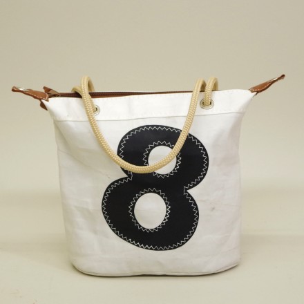 - Cabas en voile de bateau recyclée base rectangulaire. Chaque modèle est unique! Renforts des coins en cuir de vachette utilisé pour la fabrication des gants de pompier, Ecusson "Original Sail Cloth" Brodé, Fermeture zippée, anses en cordage marin, Oeillets de voilerie, Deux poches intérieures: une zippée, une plaquée, Une poche téléphone, Base: 32 cm X 16 cm. Hauteur: 35 cm.En stock