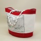 Grand panier en voile de bateau imprimée ancienne carte de méditerranée et toile de coton huilé rouge.