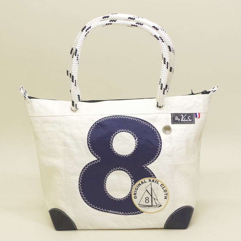 Petit Cabas en voile de bateau Recyclée base rectangulaire.