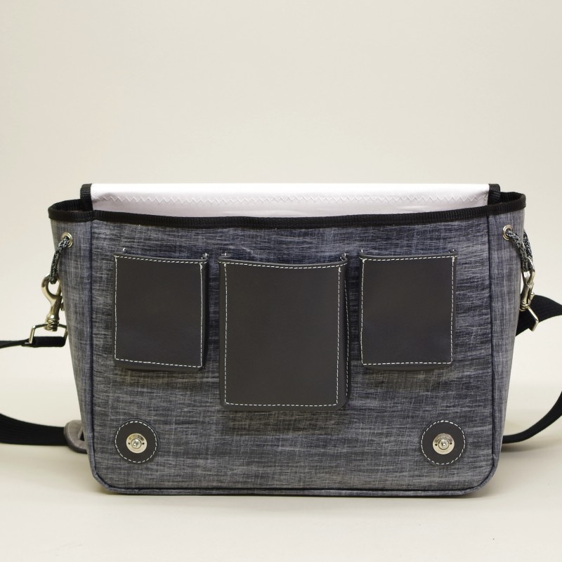 Besace en toile de voile de bateau: lite skin, dacron et doublure coton,