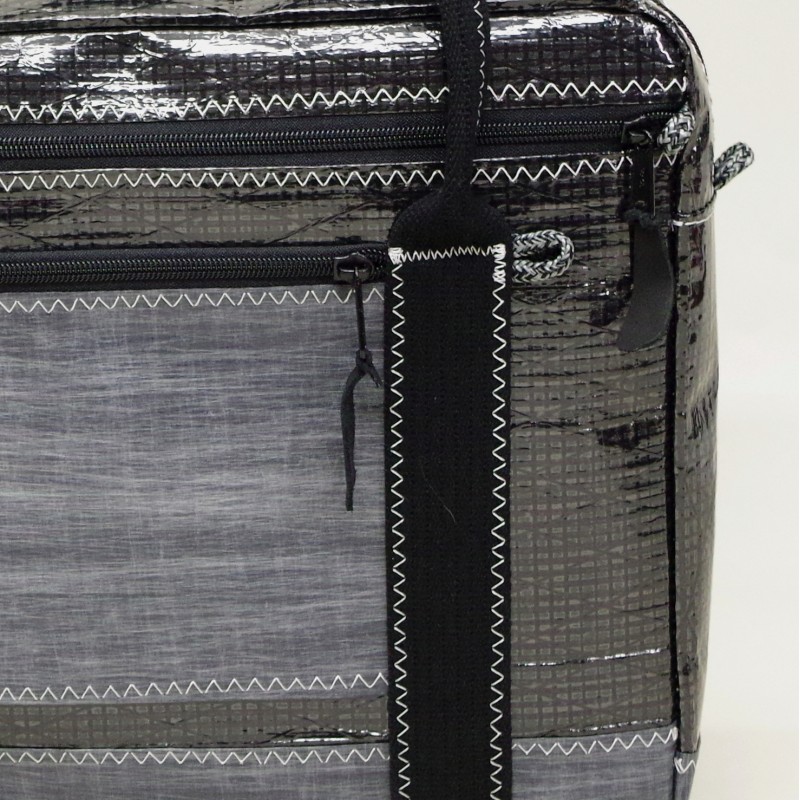 Besace en toile de voile de bateau recyclée dacron et doublure coton, Deux poches zippées: une intérieure, une extérieure, Large bandoulière réglable, Fermeture par Tenax inox. Largeur: 38 cm, Hauteur: 27 cm, Epaisseur 10 cm, Poids: 800g. Cet article est personnalisable: contactez moi!